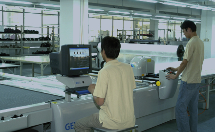公司采用CAD計算機輔助排料系統進行排料,該系統準確、高效。鋪料機代替手工鋪料的優點使鋪料均勻、整齊、松緊適宜、降低工人勞動強度。